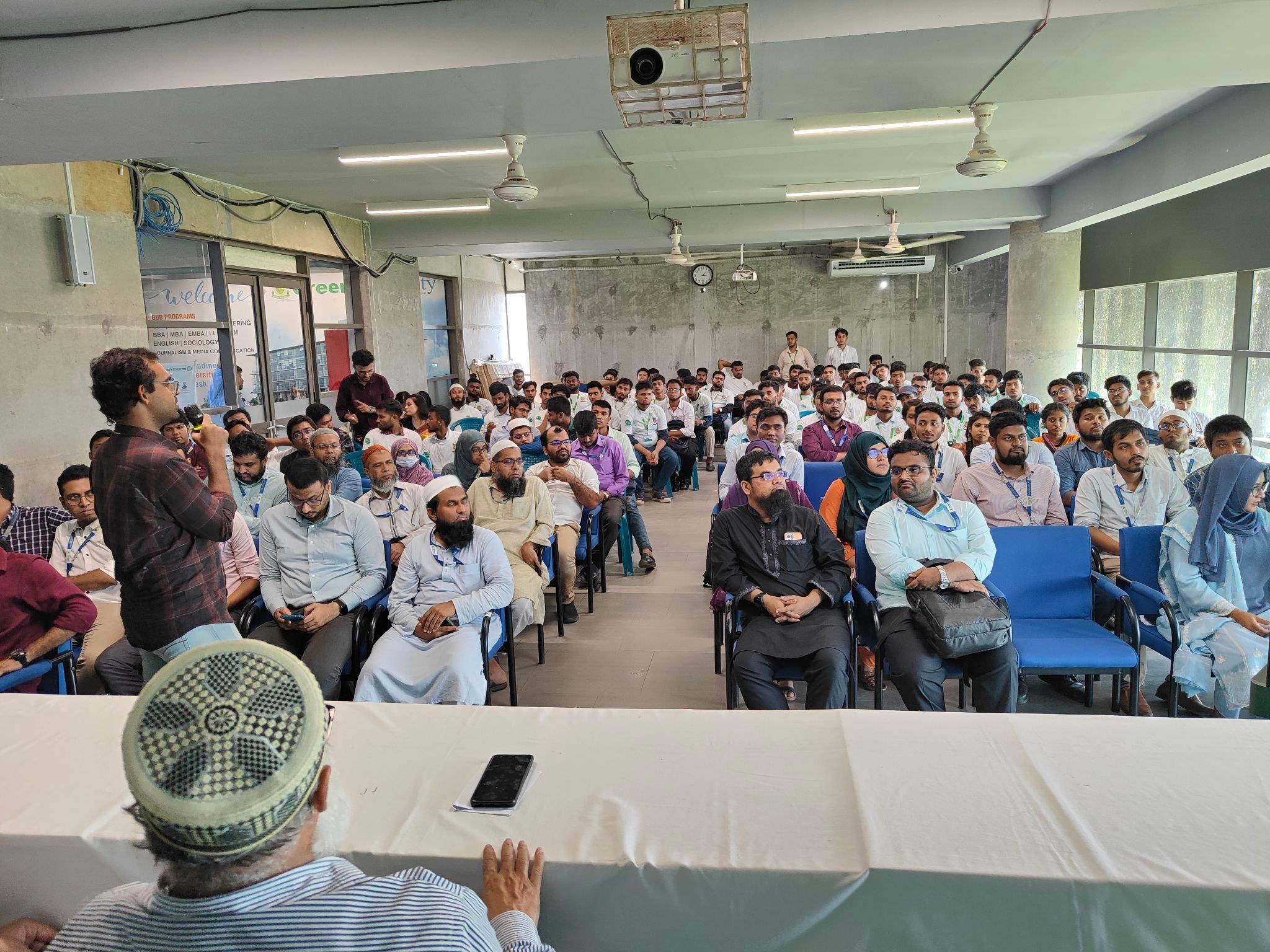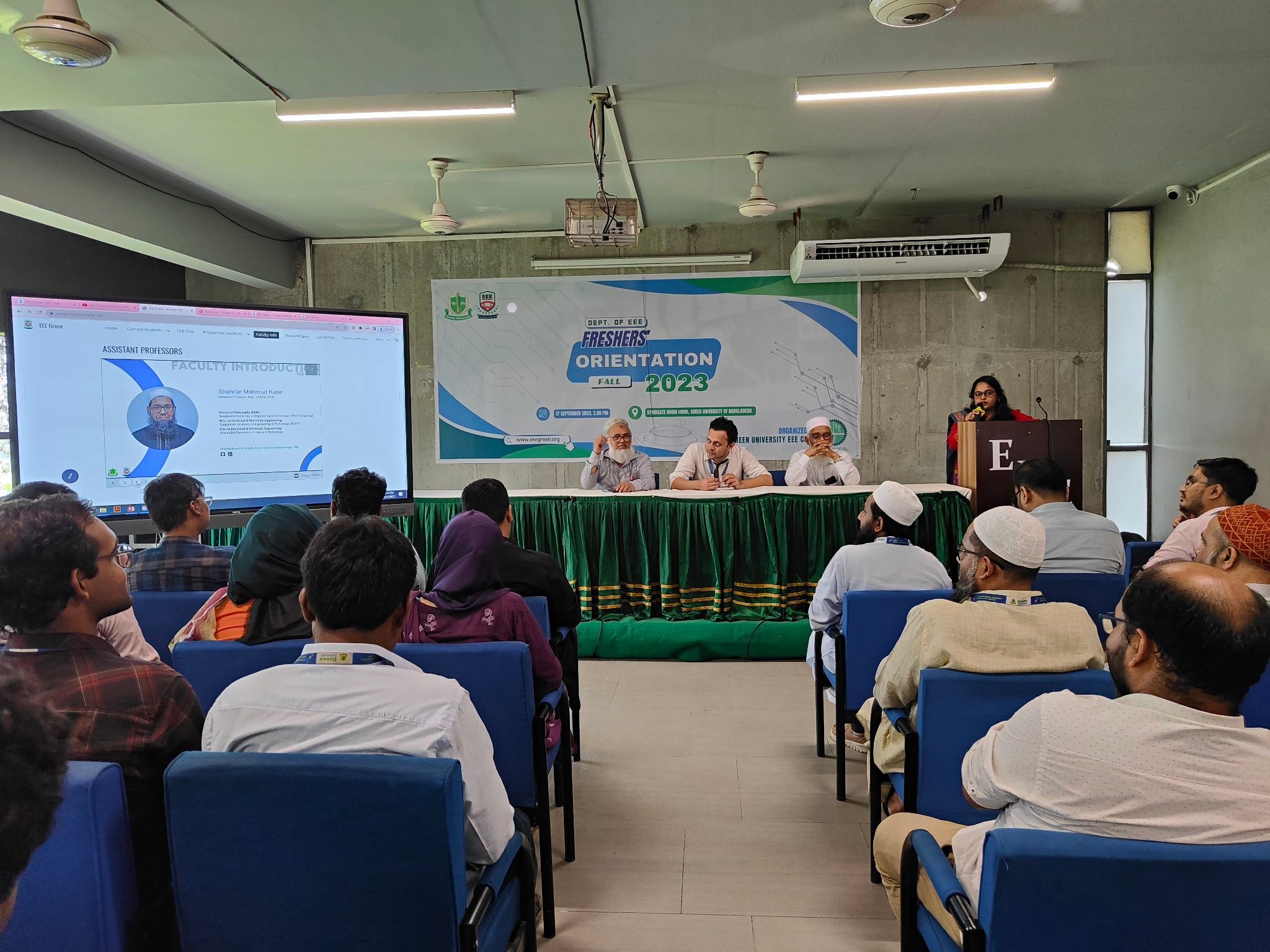 Dr. ASM Shihavuddin, chairperson of the department of electrical and electronic engineering, Prof. Dr. Faizur Rahman, Dr. Md. Quamrul Ahsan, distinguished professor of the department, faculty members, departmental coordination officers, newly admitted students, and students from various batches were all present at the occasion.