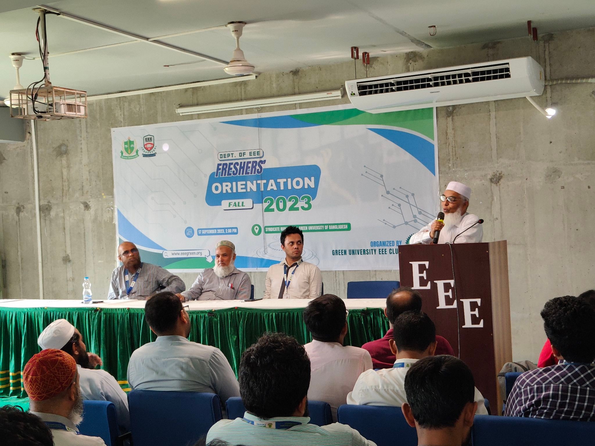 The effect of their first day at Green University was underlined by Prof. Dr. ASM Shihavuddin, who additionally advised students to uphold humane values. The students were inspired by Prof. Dr. Faizur Rahman, as he discussed the significance of the dept. of Electrical and Electronic Engineering. The beautiful and respectful relationship between teacher and student and how it may benefit us throughout our lives was discussed by Prof. Dr. Md. Quamrul Ahsan.