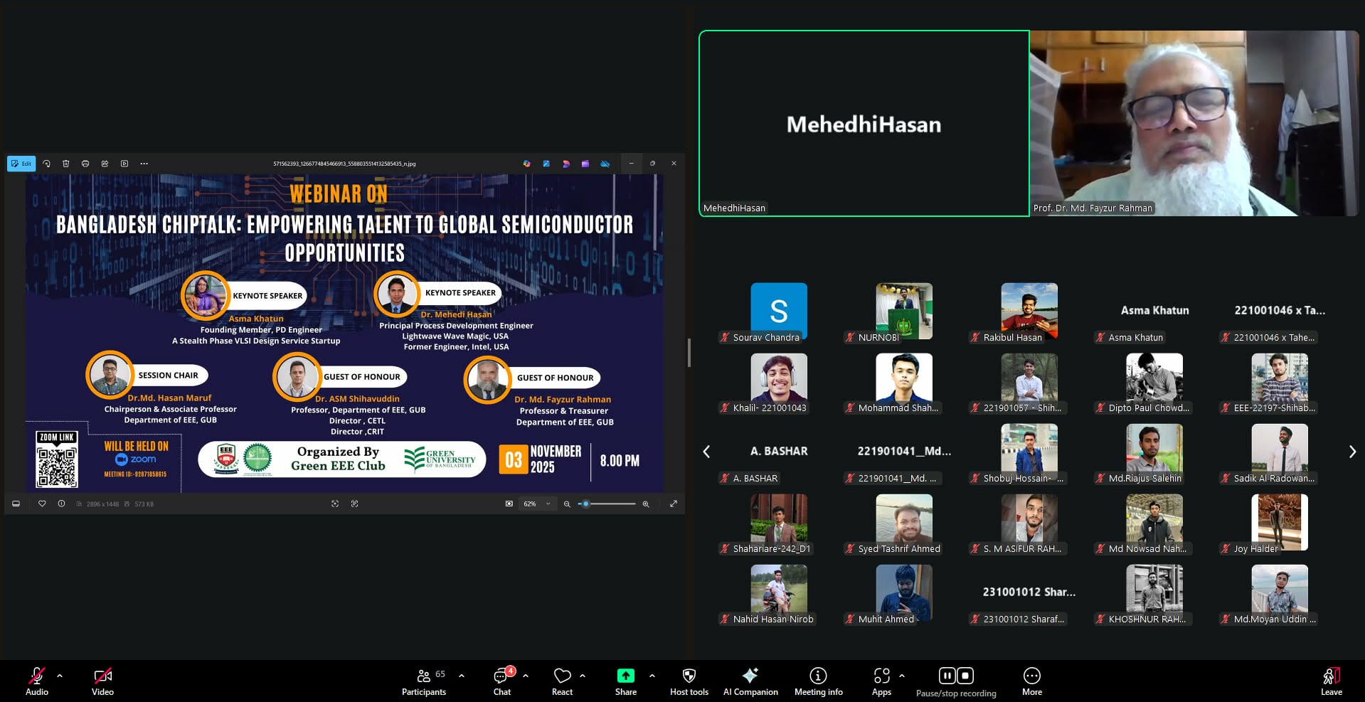We are pleased to announce the successful completion of our webinar titled “Bangladesh Chiptalk: Empowering Talent to Global Semiconductor Opportunities”, held on November 3, 2025.