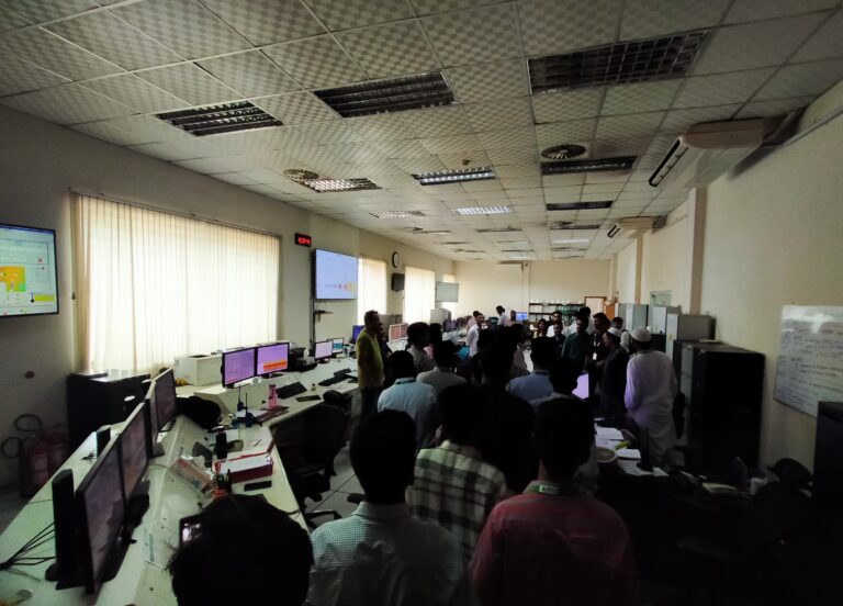 The students visited the 450MW CCPP South Control Room first. The students observed the control room monitoring principles. An Assistant Engineer demonstrated the plant map and how they control the plant and the technology they have used. After the Control Room, the students went to take a look at the ground, where they saw the turbine hall, boiler room, gas intake line, cooling water circulation, unit transformer, and Gas Insulated Substation. The control room visit ended at 01:30 PM. Then a trainee officer led everyone to the Network Control Room. An on-duty assistant engineer described the role of the network control room and showed the relay operation room also. After that, another engineer led the students to the ground station, where they saw all the protecting devices, instruments, operating principle of the substation and how it was connected to the grid line.